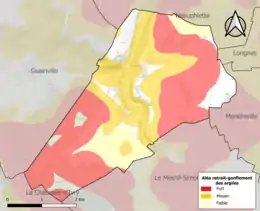 Le retrait-gonflement des sols argileux est susceptible d'engendrer des dommages importants aux bâtiments en cas d’alternance de périodes de sécheresse et de pluie. 75 % de la superficie communale est en aléa moyen ou fort (52,8 % au niveau départemental et 48,5 % au niveau national). Sur les 234 bâtiments dénombrés sur la commune en 2019, 194 sont en aléa moyen ou fort, soit 83 %, à comparer aux 70 % au niveau départemental et 54 % au niveau national. Une cartographie de l'exposition du territoire national au retrait gonflement des sols argileux est disponible sur le site du BRGM[18],[Carte 2].