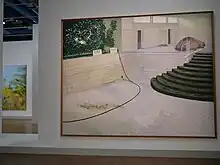 Représentant de courants assez similaires, nouvelle figuration et figuration narrative, ses thèmes de prédilection sont la représentation d'animaux dans des parcs zoologiques et les paysages de bord de mer[3]. Par une palette volontairement froide et un travail particulier sur la perspective et le cadrage, Aillaud maintient le spectateur à distance du sujet.