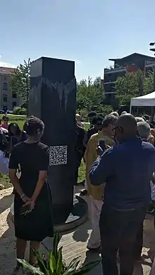 - La Liberté inachevée, stèle d'ardoise et marbre noir de 2 mètres avec sur chaque face un QRcode gravé qui permet de lire un texte d'auteur (Sud : Aimé Césaire, Est : Albert Camus, Ouest : Pierre Choderlos de Laclos, Nord : Jennifer Richard[5]), chacun sur les thèmes de la liberté et de l'esclavage, 2019, Square Victor Schoelcher à Saint-Étienne carte[6],[7],[8]