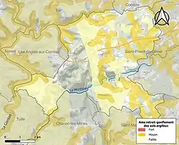 Le retrait-gonflement des sols argileux est susceptible d'engendrer des dommages importants aux bâtiments en cas d’alternance de périodes de sécheresse et de pluie. 33,4 % de la superficie communale est en aléa moyen ou fort (26,8 % au niveau départemental et 48,5 % au niveau national). Sur les 416 bâtiments dénombrés sur la commune en 2019, 123 sont en aléa moyen ou fort, soit 30 %, à comparer aux 36 % au niveau départemental et 54 % au niveau national. Une cartographie de l'exposition du territoire national au retrait gonflement des sols argileux est disponible sur le site du BRGM[18],[Carte 2].