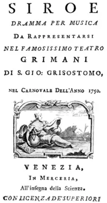 - Siroe, re di Persia (Pietro Metastasio - Venise, Teatro San Giovanni Grisostomo, 1750)