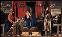 Le retable fait également référence à Giorgione pour des citations directes : saint Pierre et saint Jérôme, avec leurs barbes légèrement ombrées, font en effet référence à la physionomie de saint Joseph dans la Sainte Famille Benson (National Gallery of Art, Washington) du maître de Castelfranco, tandis que saint Catherine, la deuxième en partant de la gauche, est une reprise littérale de la Vierge dans le même panneau.