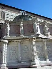 Elle est composée de deux vasques en marbre blanc et rose, polygonales, concentriques et superposées. La vasque supérieure est surmontée d'une coupe en bronze (fondue en 1277 par un maître pérugin) décorée d'un groupe de cariatides. L'ensemble repose sur une base circulaire en gradins.