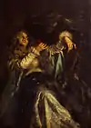 Dans L'angelo della vita, au contraire, la figure de la mère avec son enfant est une vision profane du thème peut-être le plus représenté dans l'art occidental, la Vierge à l'Enfant. La figure de la mère est représentée avec une légèreté éthérée, assise sur un trône formé de branches de bouleau tordues, en partie fanées et en partie refleuries, pour représenter le cycle de la vie et de la mort, auquel la maternité donne le caractère d'éternité. Le thème de l'amour comme passerelle vers l'éternelle jeunesse est au centre d'une autre œuvre symboliste, L'Amour à la source de la vie de 1896, où un couple d'amoureux s'approche d'une source, gardée par un ange mystérieux. Aussi cette œuvre est-elle imprégnée de la profonde harmonie entre les figures humaines représentées, le joyeux couple de jeunes amants et la nature dans laquelle ils sont plongés, représentée dans sa luxuriance printanière. Un ton de condamnation moraliste se dégage plutôt du titre de Vanité, une œuvre dans laquelle la figure féminine est dépeinte solitaire en contemplant sa propre figure dans un étang, d'où émerge un serpent aux formes mythologiques, suggérant comment l'artiste considère la femme destinée à ne trouver son épanouissement que dans son rôle de mère ou de partenaire[44]. Cependant, d'autres interprétations soulignent plutôt comment la symbolique du serpent représente un avertissement pour la femme, dont Segantini exalte la splendeur juvénile, de ne pas retomber dans les ruisseaux narcissiques de la vanité pour finaliser le don de la beauté à la relation d'amour envers l'autre[45].