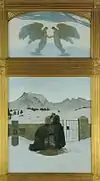 La lunette montre des maisons de Saint-Moritz dans un paysage hivernal, vivement éclairées par le clair de lune. Pour les médaillons à droite et à gauche, des représentations de roses alpines et d'edelweiss étaient prévues, symboles du printemps et de l'été dans les Alpes.