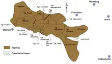 Alors que les plantes, et en partie aussi les invertébrés ont été trouvés dans tous les domaines des filons de lignite, les vertébrés sont reliés à des lieux définis, étroitement limités. En tout, on connaît plus de 80 sites, dont 36 présentent une proportion non négligeable de restes de vertébrés. Ceux-ci se trouvent principalement dans les filons inférieur et moyen, avec environ deux fois plus d'endroits dans le moyen que dans l'inférieur. Le filon supérieur ne comportait qu'un site de fouille intéressant, et était autrement largement dépourvu de fossiles, ce qui peut être rapporté aux transformations diagénétiques pendant le pléistocène sous l'action des conditions périglaciaires[9]. On n'a pu trouver aucune fossilisation dans le filon de base. La distribution spatiale des gîtes fossilifères de vertébrés reflète les conditions pour la conservation des fossiles, qui n'étaient pas uniformes dans l'ensemble du Geiseltal. C'est pourquoi la majeure partie des sites à vertébrés, et avant tout de ceux à squelettes ou parties molles largement préservés, se concentre dans le Geiseltal centre et sud, principalement près du seuil principal de Neumark, et dans la cuvette de Wernsdorf qui le jouxte à l'est. Le plus grand nombre de sites se trouve donc dans les mines à ciel ouvert Cecilie, Leo, Geiselröhlitz et Pfännerhall, s'étendant sur une surface de 20 km2 environ[13]. Vers le nord, l'ouest et en partie l'est, la qualité de la conservation des fossiles diminue considérablement[14],[15].