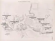 Gisr el-Mudir (Grande enceinte, en rouge) sur la carte de Saqqarah. | ||
