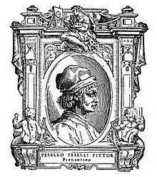 Vasari a consacré une de ses biographies à Pesello et à Pesellino. Elle est malheureusement entachée d’erreurs. Vasari se trompe sur le prénom de Pesello, le rebaptisant Francesco di Pesello, lui attribue certaines des œuvres de son petit-fils, et en fait l’élève d’Andrea del Castagno, pourtant né en 1419, soit 52 ans après lui. Il nous renseigne cependant sur l’Adoration des Mages peinte par Pesello pour le Palazzo Vecchio (aujourd’hui à la Galerie des Offices) : « Ayant donné des preuves de son savoir, il reçut de la Seigneurie de Florence la commande d’une Adoration des Mages à la détrempe qui fut placée à mi-hauteur de l’escalier du Palais[2]. »