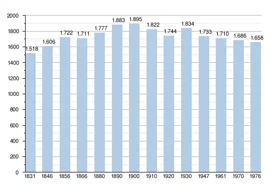 - Sources : INS, Rem. : 1831 jusqu'en 1970 = recensements, 1976 = nombre d'habitants au 31 décembre.