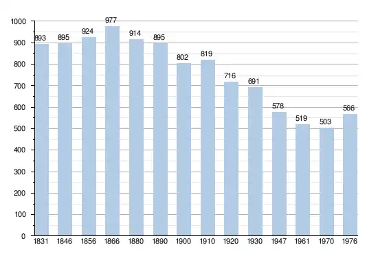 - Sources:INS, Rem:1831 jusqu'en 1970=recensements, 1976= nombre d'habitants au 31 décembre