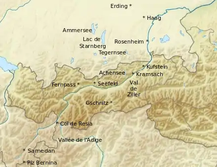 - par le Seefelder Sattel, il renforce le glacier de l'Isar-Loisach par l'est, créateur du lac de Starnberg ;