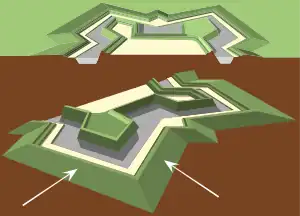 Le glacis était suivi par le chemin couvert, qui permettait à des soldats équipés d'armes de courte portée de défendre le glacis sans être sous le feu de l'ennemi. Le glacis se trouvait donc sous la double couverture des fusils d'une part et de l’artillerie d'autre part, placée sur les bastions et les courtines de la forteresse.