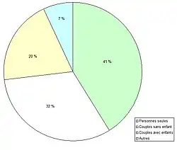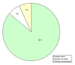 La ville compte 215 familles en 2012. Il y en avait 78, lors du recensement de 1891[5]. Une famille comporte, en 2012, en moyenne, 2,7 personnes[1], contre 5,0 en 1891[5].