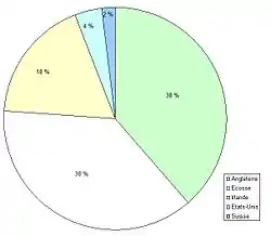 - Dont 39 % nés en Angleterre, 38 % en Écosse, 18 % en Irlande, 4 % aux États-Unis et 2 % en Suisse.