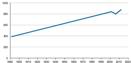 La densité de population est de 329,8 habitants.km−2 (2,1 habitants.km−2 pour le Manitoba). L'âge moyen de la population est 19,9 ans en 1891[5] et 53,5 ans en 2012. 87,5 % des habitants ont plus de 15 ans, en 2012[1].
