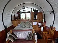 Un chariot bâché en guise de lieu d'hébergement en Nouvelle-Zélande.