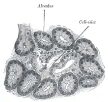 Les glandes alvéolaires sont avec les glandes tubulaires (en) les deux grands types de glandes existantes. Elles se caractérisent par l'élargissement de la lumière sécrétoire à certains endroits pour former de petites saccules, les alvéoles. Suivant les sources, on distingue ou non les glandes alvéolaires des glandes acineuses, qui se différencient par la forme de leur lumière.