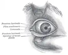 Chez le vieillard, des traînées grisâtres perpendiculaires au bord libre sont le signe de la présence de « calculs » situés dans les glandes tarsiennes. Ces calculs font saillie à la surface de la conjonctive et peuvent provoquer une inflammation locale ou de petits ulcères localisés à la partie inférieure de la cornée[4].