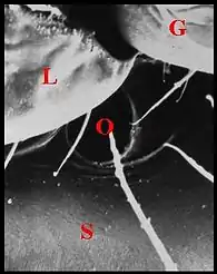 Les premières études histologiques par coupes sériées (C.H.) et ultrastructurales (microscopie électronique à balayage, M.E.B. et à transmission, M.E.T.) de l’ “organe sternal” ont été effectuées par A.Lopez & al (1983,1988,1993[3],[4],[5]). Elles apportent la preuve formelle qu’il est de nature glandulaire et s’ouvre bien à l’extérieur par la fossette (“pit”). Ils ont également proposé d’appeler cette dernière “ pore labio-sternal ” et la structure qui y débouche, “ organe labio-sternal ”, ces noms composés exprimant mieux leur position très antérieure au contact du labium.