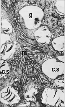 Sur le plan ultrastructural, les glandes des gnathocoxae et du labium s’apparentent donc à la l'organe rostral dont les adénocytes possèdent, eux aussi, un réticulum endoplasmique lisse abondant.