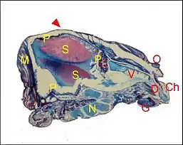 D’autre part, les cellules sécrétrices possèdent un noyau basal et sont toujours pleines de boules de sécrétion bien individualisées (3 μm). Leur chondriome est très peu développé. De plus, la pièce terminale est inexistante, la lumière est mince et se continue par celle d’un conduit constitué de chitine (polysaccharide azoté, principal constituant de la cuticule des Insectes normalement)[14].