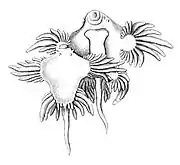 « D'après l'examen que nous avons fait d'un grand nombre d'individus, nous croyons, avec M. de Blainville, MM. Quoy et Gaimard, etc., que ce genre ne renferme encore qu'une seule espèce, et que les différences qui ont été observées dans le nombre et la forme des appendices branchiaux, différences qui ont été exagérées dans quelques figures, ne constituent tout au plus que des variétés[86]. » |