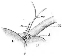 Dessin de détail du pénis, armé de son crochet corné, par Bergh (1888).