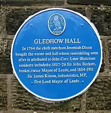 Gledhow Hall est construit sur ce qui était un terrain monastique appartenant à l'Abbaye de Kirkstall, principal propriétaire foncier de la région d'Allerton au XIIIe siècle. Les terres abbatiales sont saisies par la Couronne en 1539 lors de la Dissolution des Monastères. John Thwaites achète le terrain et construit une maison au XVIIe siècle. Elle est remodelée entre 1764 et 1767 par John Carr pour Jeremiah Dixon, qui en est alors le propriétaire[2].