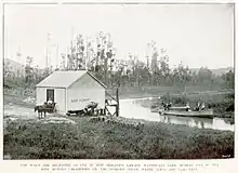 Le lac Whangape (en) et les cours d’eau voisins, furent utilisées pour le transport et la « Whangape Launch Company » ayant été fondée en 1906 pour convoyer les marchandises à partir de Rangiriri[13]. En 1889 , le déversoir a été en partie retiré pour permette un bateau de passer à travers[14]. En 1894, il avait encore été signalé au Parlement des obstructions en forme de déversoirs à anguilles, qui ont été retiré du tracé du cours d’eau navigable, s’écoulant à partir du lac Whangape dans le fleuve Waikato, afin de permettre aux bateaux à vapeur de circuler désormais sur le fleuve Waikato, pour transporter les marchandises nécessaires pour les colons de ce district."[15].