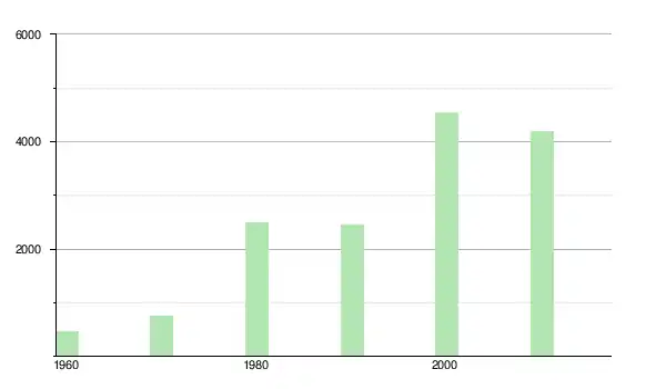 | 1980 | 2 496 | ▲ +226,27 % | |