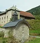 L'église abbatiale d'Entremont est un édifice qui se trouvait à cet emplacement, sans nul doute au XIIe siècle et fut remaniée en 1680 sous l'abbatiat de l'abbé de Granery. Elle est remarquable par son mobilier et son grand maître-autel (1685)[24].