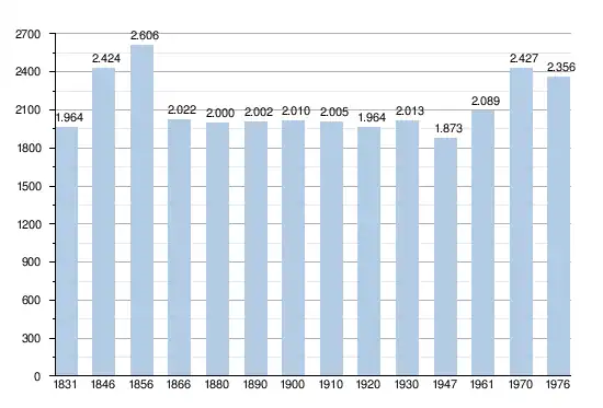 - Sources : INS, Rem. : 1831 jusqu'en 1970 = recensements, 1976 = nombre d'habitants au 31 décembre.