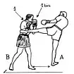 - 2. … après l’action de battage, [B] enchaîne une attaque avec un coup de poing direct court sur le tronc adverse