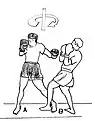 - Lors d’une attaque adverse en en anglais, « cross » à la face, [B] porte une attaque simultanée en coup de poing direct du bras avant (en anglais, « jab ») au corps
