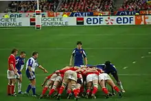 - Points : le décompte des points est compliqué par les différentes possibilités de marquer. Depuis 1992, l'essai vaut 5 points, la transformation de l'essai 2 points, la pénalité 3 points et le drop 3 points. (voir Décompte des points au rugby à XV)