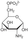 La glucosamine-6-phosphate est un composé organophosphoré important du métabolisme cellulaire. Elle est synthétisée par la glucosamine-6-phosphate désaminase à partir de fructose-6-phosphate et de glutamine, et est le précurseur des biosynthèses des osamines.
