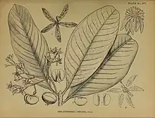 ![]() Gluta usitata, dessin feuilles, fleurs et fruits |