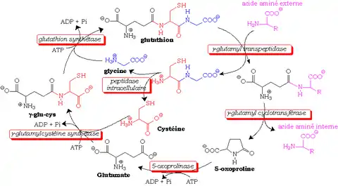 Alton Meister[4] a montré que le glutathion participait au cycle γ-glutamyl, qui permet l'entrée ATP-dépendante des acides aminés dans les cellules grâce à la synthèse et à la dégradation de GSH.