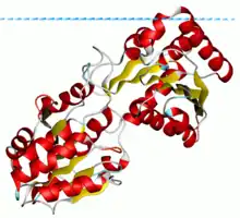 À l'inverse des glycosylhydrolases, la diversité de structures tridimensionelles rencontrée pour glycosyltransférases semble réduite. Selon la base de données de classification des structures de protéines, seuls 3 types de repliement sont observés pour les glycosyltransférases[2]. Récemment, un quatrième type de repliement a été découvert pour l'enzyme impliquée dans la biosynthèse de polymère de NAG-NAM, au sein du peptidoglycane[3].