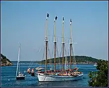 - Quatre-mâts goélette : Tous les mâts sont gréés en voile aurique à l'exception du phare avant entièrement carré[3].
