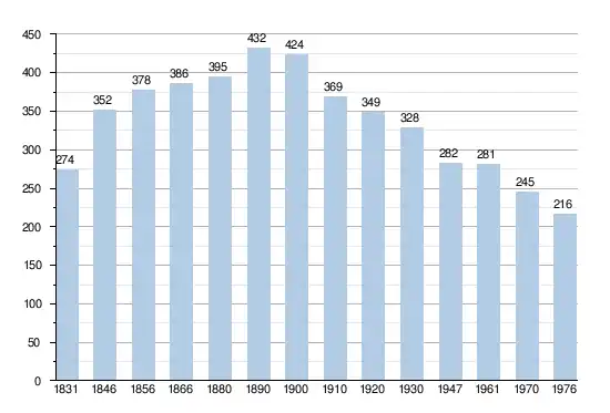 - Sources:INS, Rem:1831 jusqu'en 1970=recensements, 1976= nombre d'habitants au 31 décembre