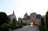 Le château comprend une tour carrée en moellon de pierre bleue, bâtie vers 1400[alpha 3] et deux ailes complètement modernisées. Le rez-de-chaussée du donjon fut rehaussé vers 1766[15]. En haut, on remarque la place pour une sentinelle. Les bâtiments d'habitation, bâtis sur trois côtés de la tour, et les bâtiments de ferme, datent du XVIIIe siècle aussi[15].