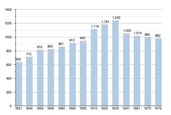 - Sources : INS, Rem. : 1831 jusqu'en 1970 = recensements, 1976 = nombre d'habitants au 31 décembre[5].