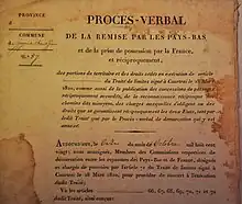 - Procès-verbal de la remise par les Pays-Bas et de la prise de possession par la France et réciproquement des territoires de Gœgnies-Chaussée du 11 octobre 1820