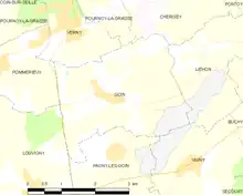 - Appelé Goddinga Villa[17] sous les Gallo-romains. Goin était une enclave lorraine dans le Saulnois. Seigneurie et justice sous la prévôté d'Amance. La seigneurie relevait de la famille de Commercy, puis du duc de Lorraine, Charles III de Lorraine.