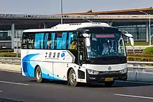 Golden Dragon XML6125JHEVG5CN1 (carrosserie Chuanliu ) au Terminal 3 de l'aéroport International de Pékin.