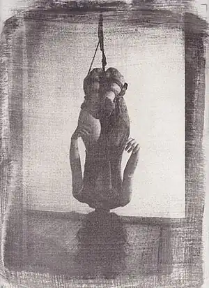 En résumé, c'est une composition d'images obtenue par la superposition successive de chaque couche colorée. Chacune des couches est ensuite insolée et dépouillée dans un bac d'eau. Chaque dépouillement[7] s'effectue avec toute une série d'outils à adapter soi même, ce qui constitue une phase de création indéniable et donc d'interprétation. C'est précisément dans le geste du dépouillement qu'apparaît le caractère singulier de la gomme bichromatée loin du mouvement mécanique et de la reproduction à l'infini.