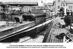 Le Gondar fait partie du XIe Escadron de sous-marins, basé à La Spezia[4], sous le commandement du lieutenant de vaisseau (tenente di vascello) Piero Riccomini.