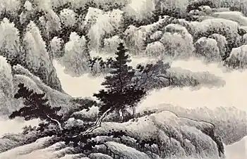 Pour avoir passé la majeure partie de sa vie à Jinling (Nankin), il chérit chaque montagne, chaque rivière, lac clairière et arbre. Il peint souvent ses décors les plus réputés comme la montagne Froide (où il habite) et le mont Qixia. En général il n'emploie que l'encre; peu de ses peintures contiennent de la couleur. Pour représenter les montagnes et les arbres du Sud humide et pluvieux, il invente la méthode de « l'accumulation d'encre » : il crée un puissant effet atmosphérique en superposant les couches de pinceau légèrement imbibé de diverses tonalités d'encre. Cette méthode s'inspire des œuvres de la famille Mi des Song, aux montagnes enveloppées de nuages[12].