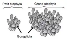Dessins de gongylidia et de staphylae de différentes tailles.